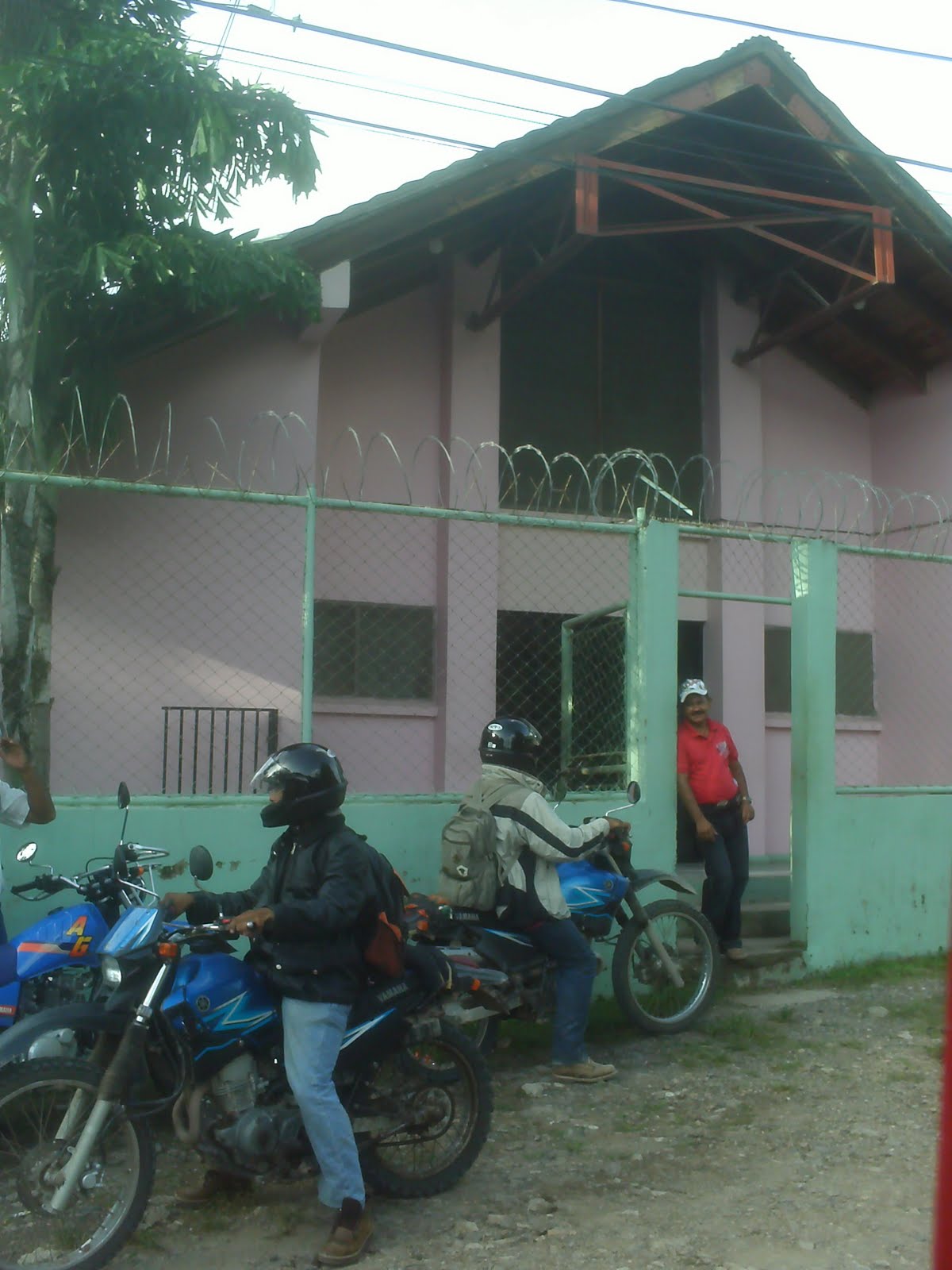 The office in Libertad where we had the two meetings. The Extentionistas are out front on their motorcycles. Each Extentionista oversees a region that includes several communities. They oversee all the different aspects of the health program. All the Extentionistas drove to Libertad (up to 2 hours for some of them) twice in order to help me collect all the information from them.